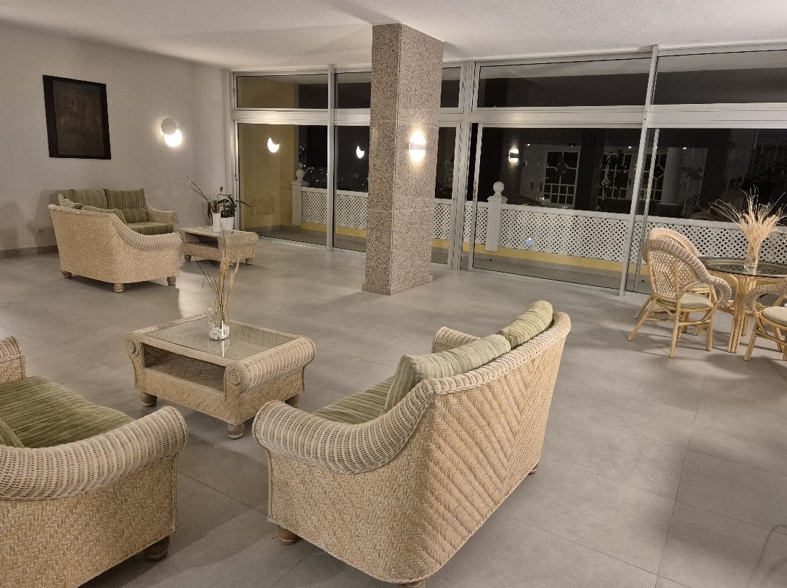 Auf den 4. Etage gibt es ein weitere Sonnenterrasse mit Liegen und Sonnenschirmen und den Blick auf den Atlantik.