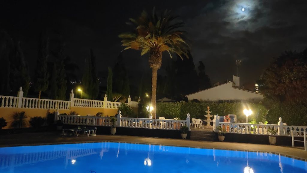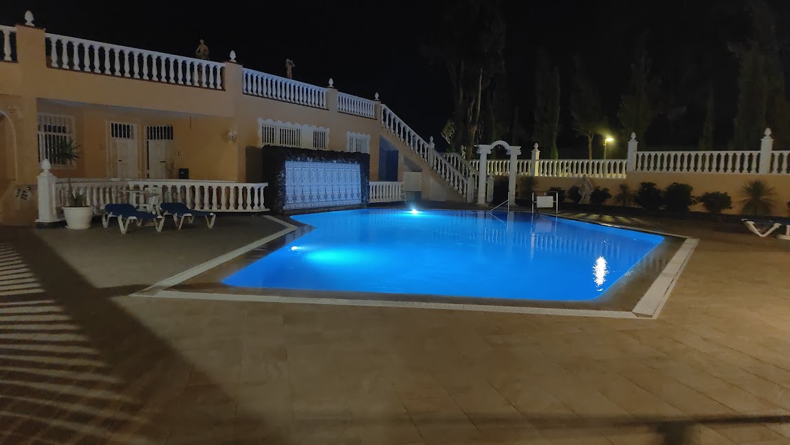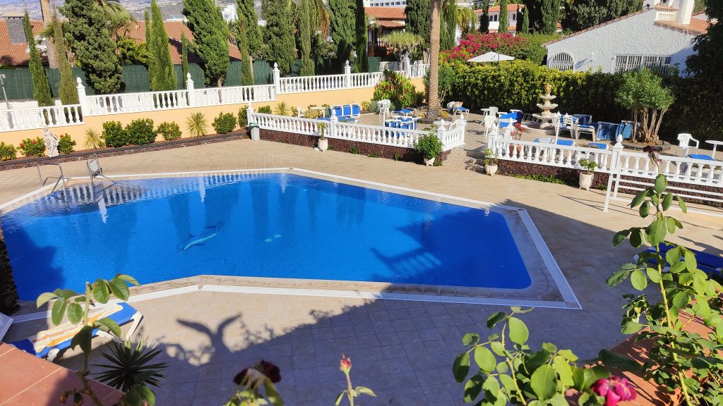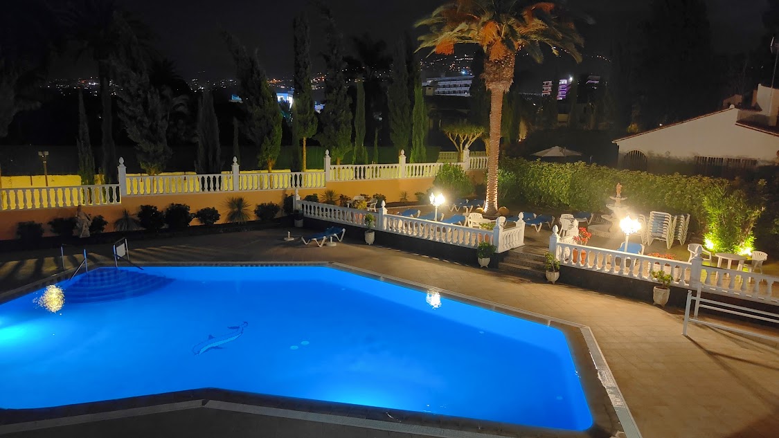 In dem wunderschönen Garten befindet sich ein beheiztes Swimmingpool (25º) mit Salzwasser. Rund um den Pool gibt es Rutschfreie Fliesen, einen Eingang für Behinderte, eine grosse Sonnenterrasse mit Liegen und Sonnenschirmen und eine heisse Dusche. Sie haben in diesem Bereich einen tollen Blick auf den Teide.