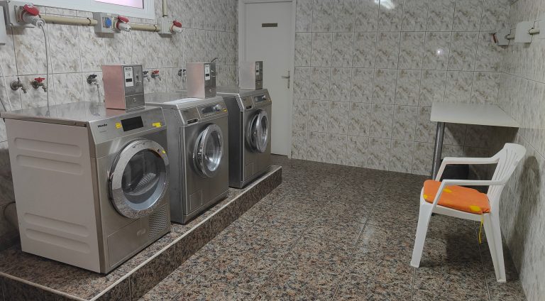 Im Hause gibt es eine Waschküche mit Münzwaschmachine und Trockner.